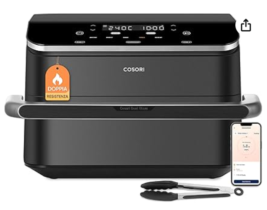 7 FUNZIONI: croccantezza massima, frittura ad aria, cottura arrosto, al forno, riscaldamento, essicazione, lievitazione. Fino al 75% più rapido rispetto ai forni a ventola (testato con bastoncini di pesce e salsicce, incluso il preriscaldamento)