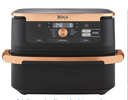TECNOLOGIA DUAL ZONE: Cucina 2 cibi, in 2 modi diversi, entrambi pronti allo stesso tempo! Adatta fino a un pollo da 2 kg o 1,5 kg di patatine in ciascuna zona con una capacità di 5,2 litr